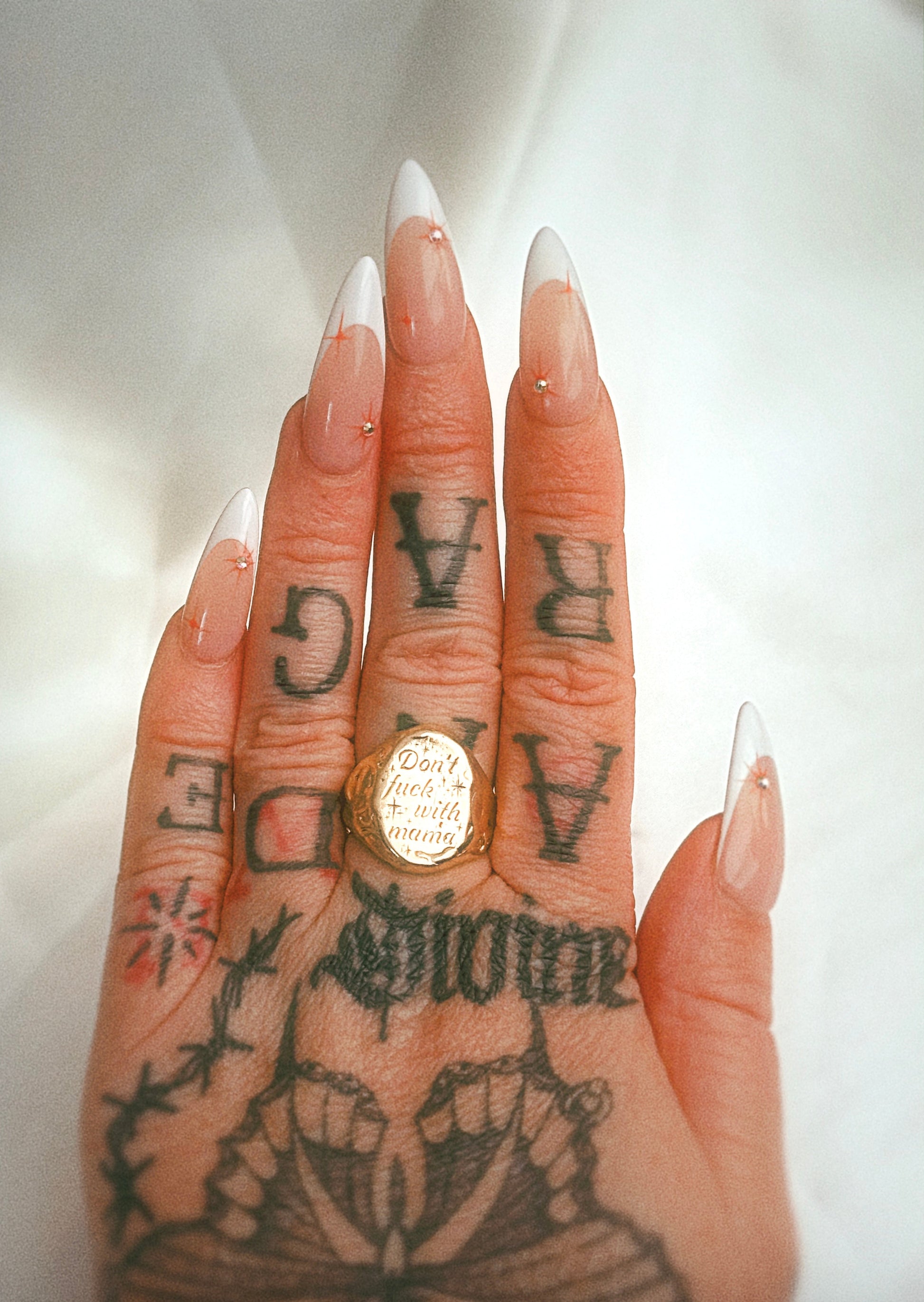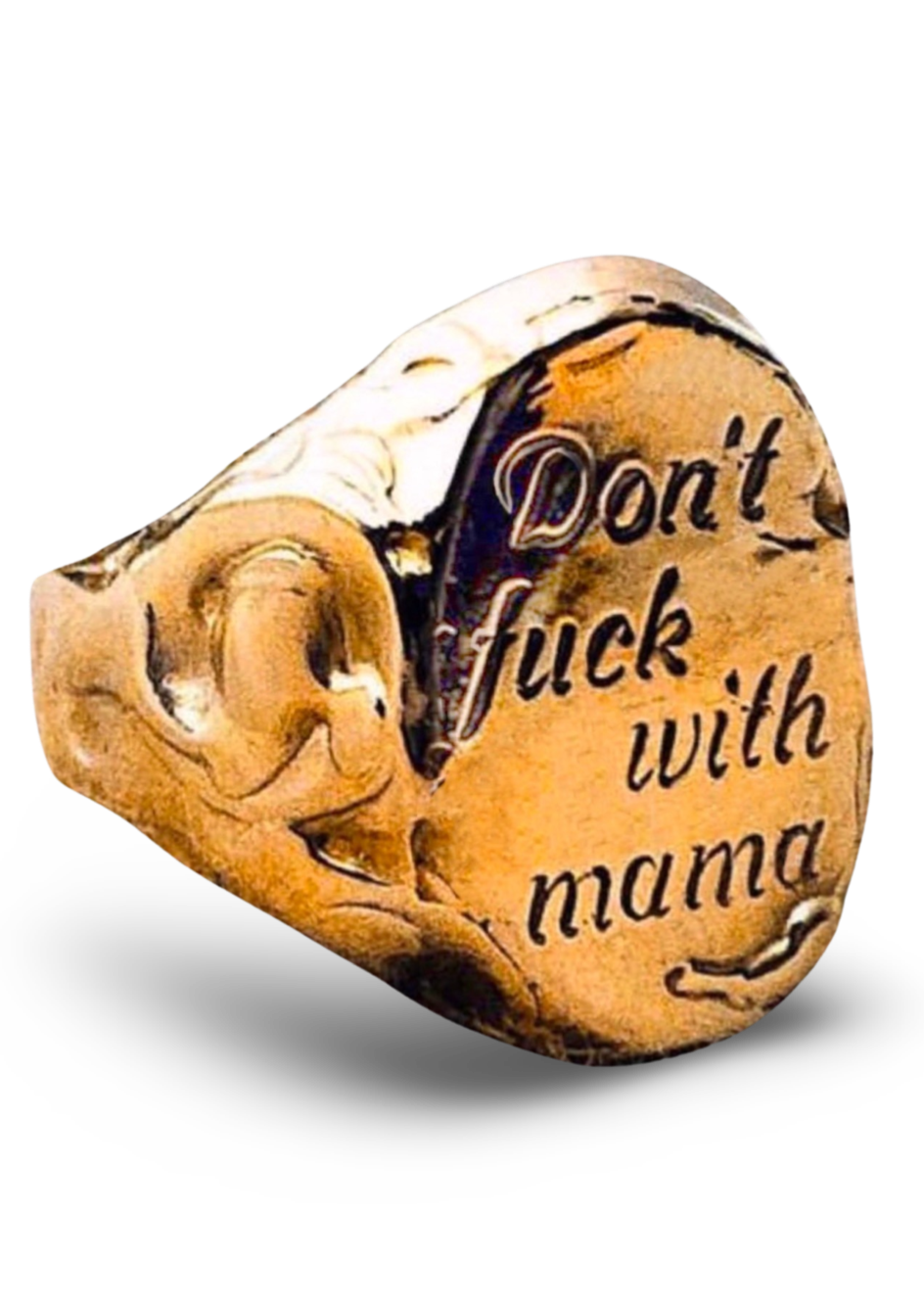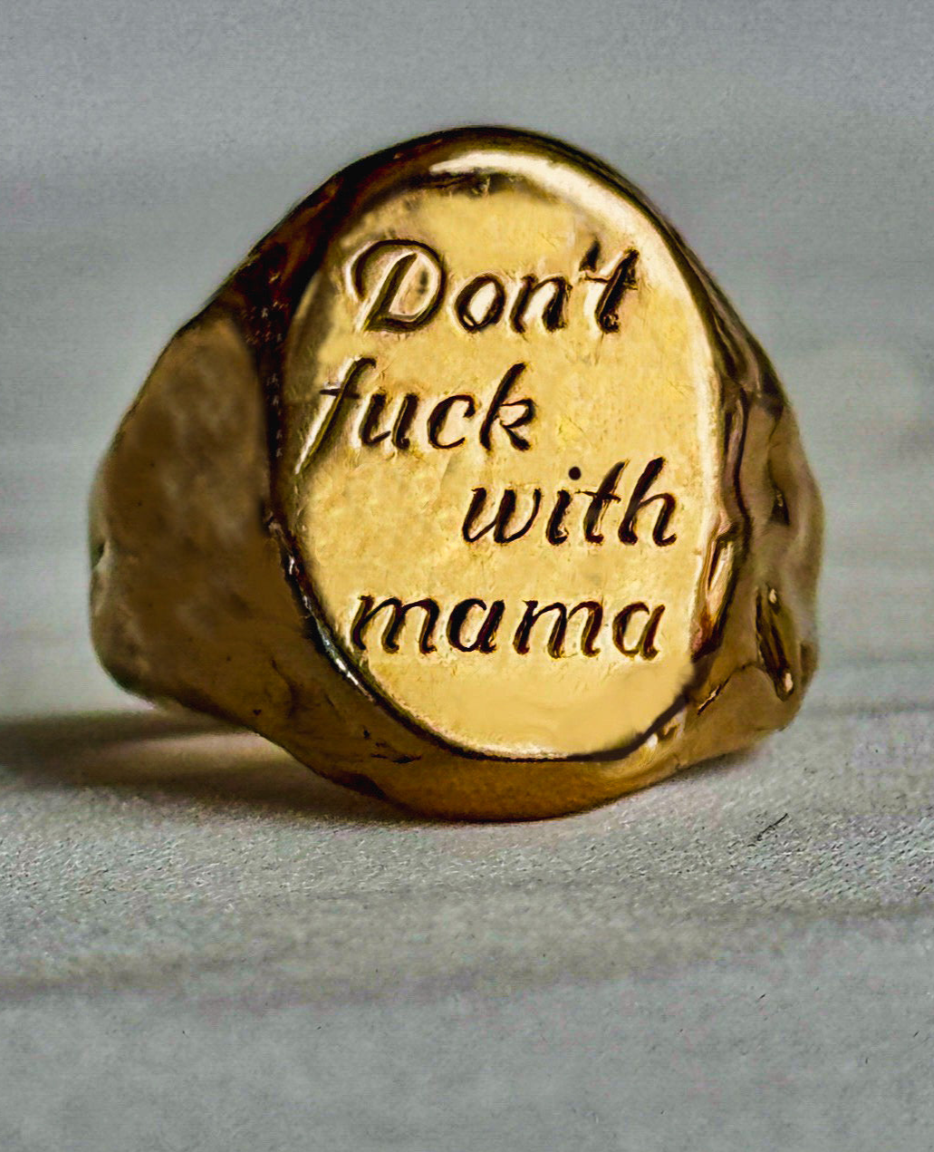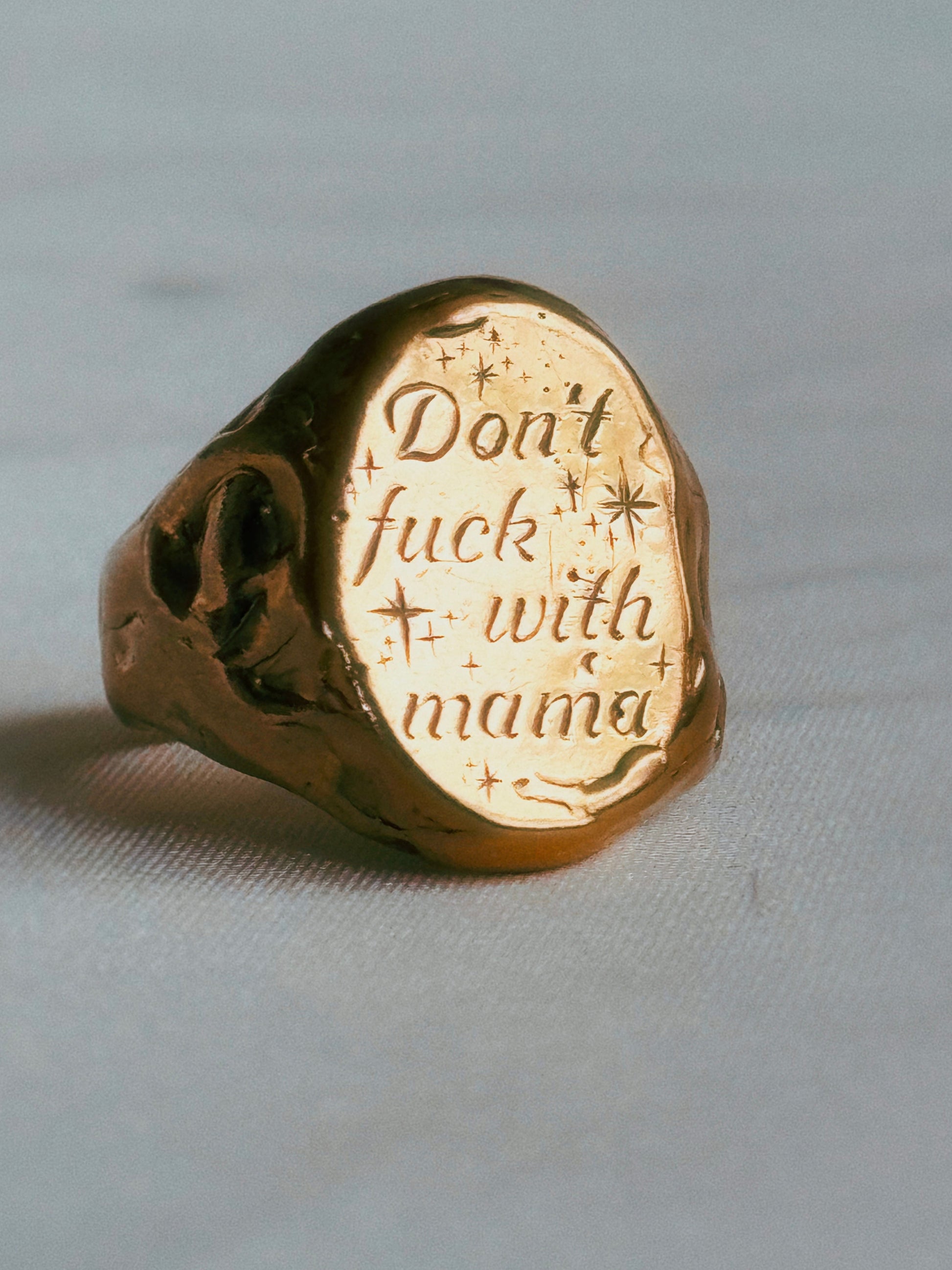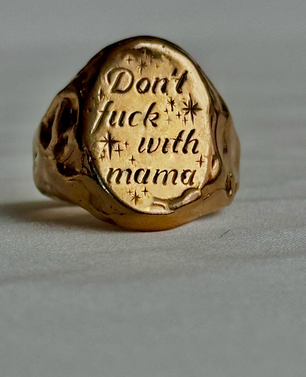 ‘Don't f*ck with mama’ signet ring in heirloom quality solid 14 karat yellow gold.